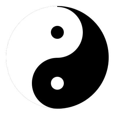 世界はこのようになっているのではないかと思うのです。白と黒がある。白だけでもだめで、黒だけでもだめ。その中にまた逆の色が入っている。という秩序のある世界なのではないでしょうか。このマークはこの世界そのものという気がします。